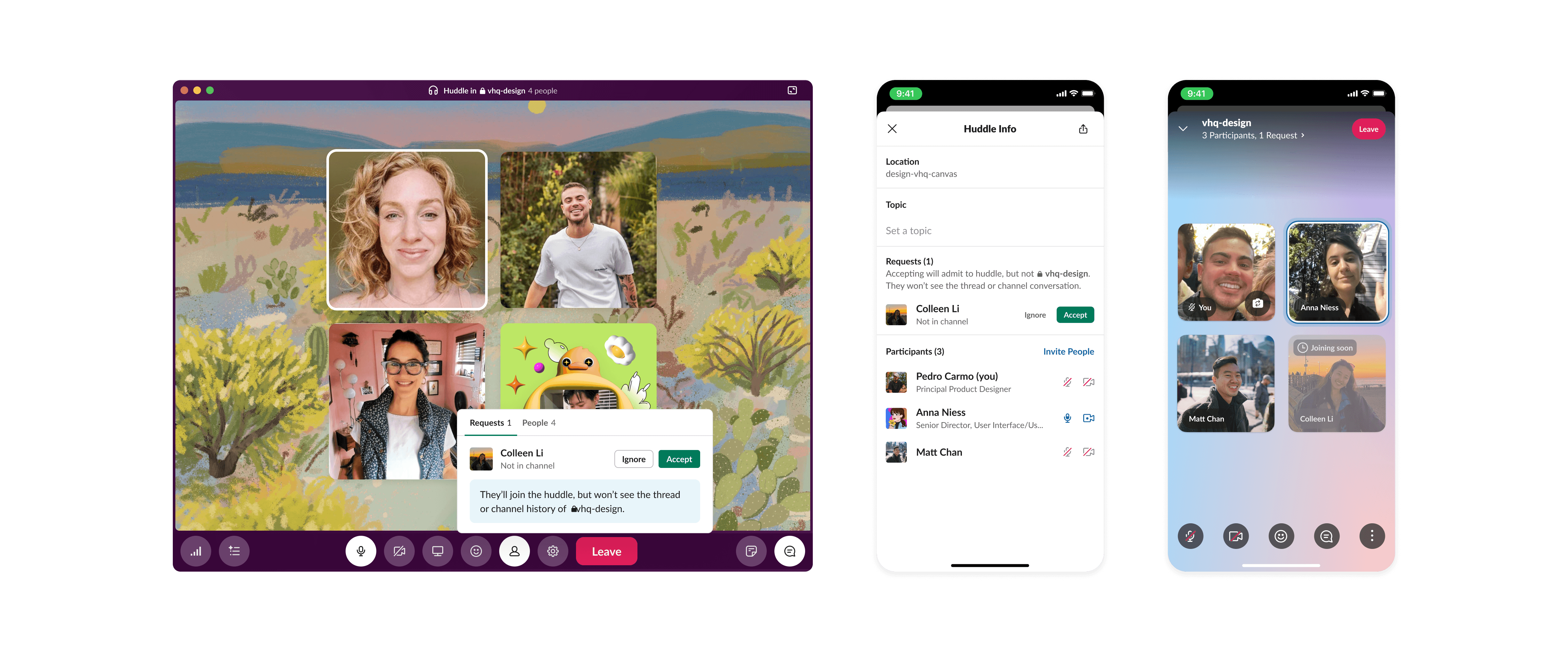 LED DESIGN FOR "KNOCK TO ENTER", A HUDDLES FEATURE THAT ENABLES USERS TO REQUEST ACCESS TO PRIVATE CHANNELS. I ALSO DELIVERED A SERIES OF QUALITY OF LIFE IMPROVEMENTS SUCH AS PINNING PARTICIPANTS, SINGLE PLAYER JUKEBOX, AND PUSH TO TALK.