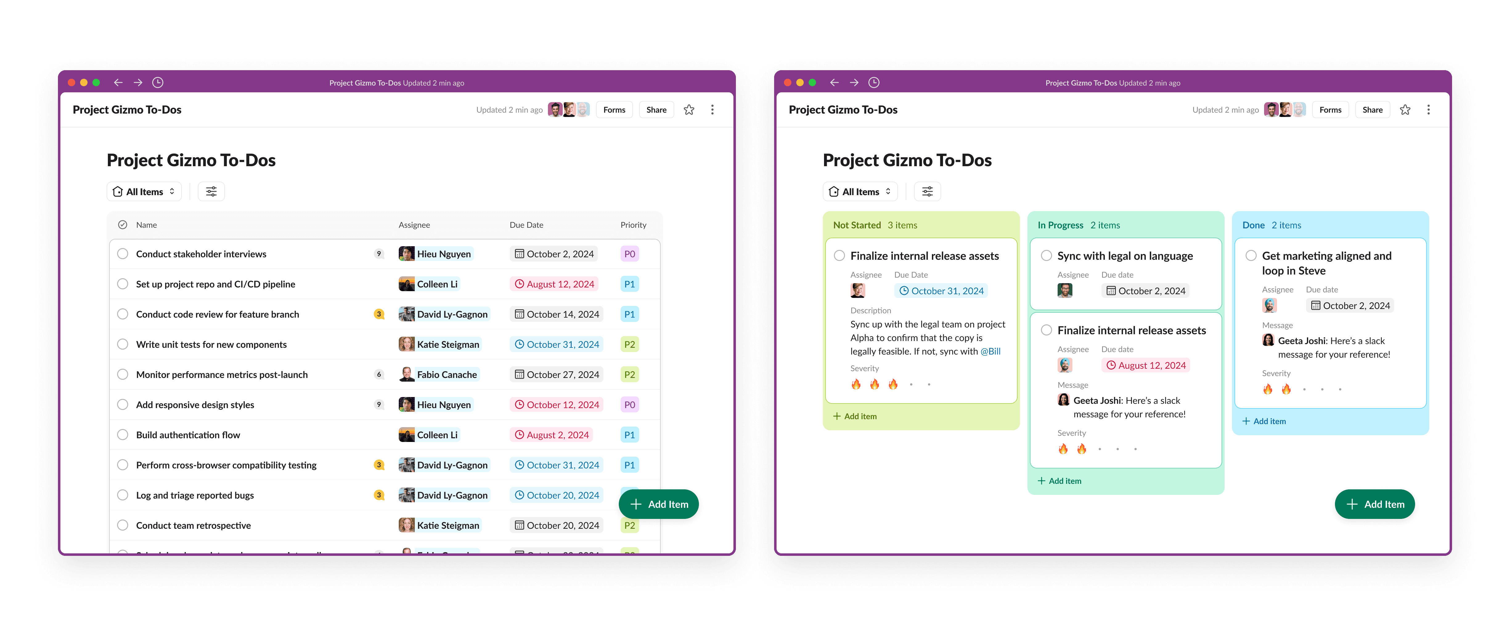 I was part of the 0 to 1 team that launched Lists, defining design and strategy across every desktop surface. Notably, I built out detail view, system unfurls, version history, templates system, and browser. Following our GA launch, I led design for the entire Lists product and shipped task tracking features that enabled users to track assigned tasks and due dates.